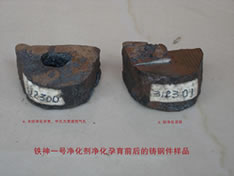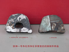 铁神一号净化剂净化孕育前后的铸钢件样品 铁神一号净化剂净化孕育前后的铸钢件样品